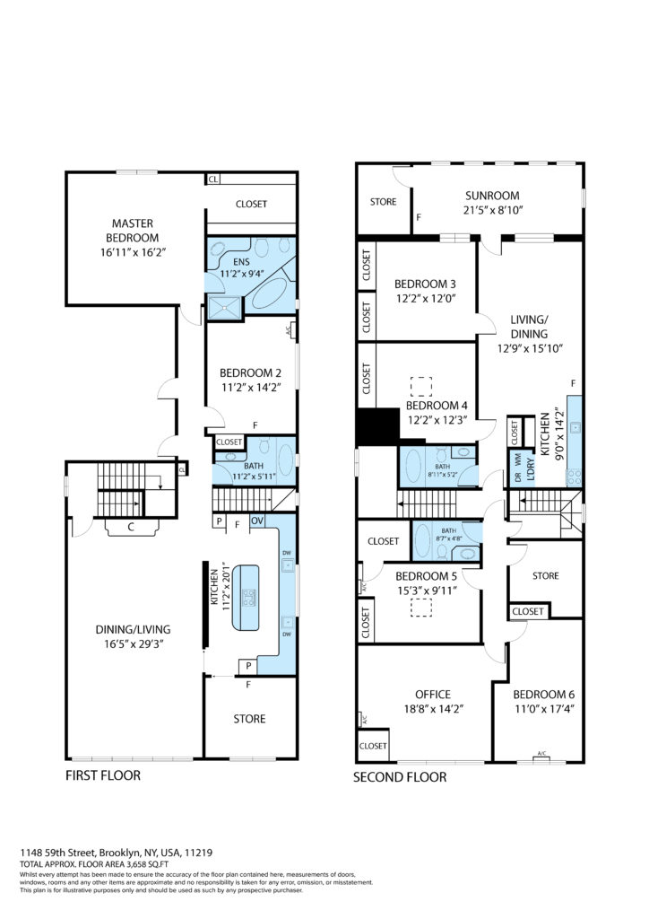 This property is a duplex condo on the 3rd and 4th floor which boasts 7 bedrooms and 3 bathrooms. It has a private entrance which leads to the basement and the apartment. As you enter the home you’ll find a large living room and dining room and hardwood floors. The spacious kitchen has lots of cabinet space as well as 2 sinks, dishwashers and ovens. There’s a office and balcony to finish off the front of the home. This floor has a master bedroom with master bath and large walk-in closet, another two bedrooms, a bathroom and a laundry room. The second floor has 4 bedrooms and a bathroom. You’ll also find a 2 bedroom apartment on that floor as well.