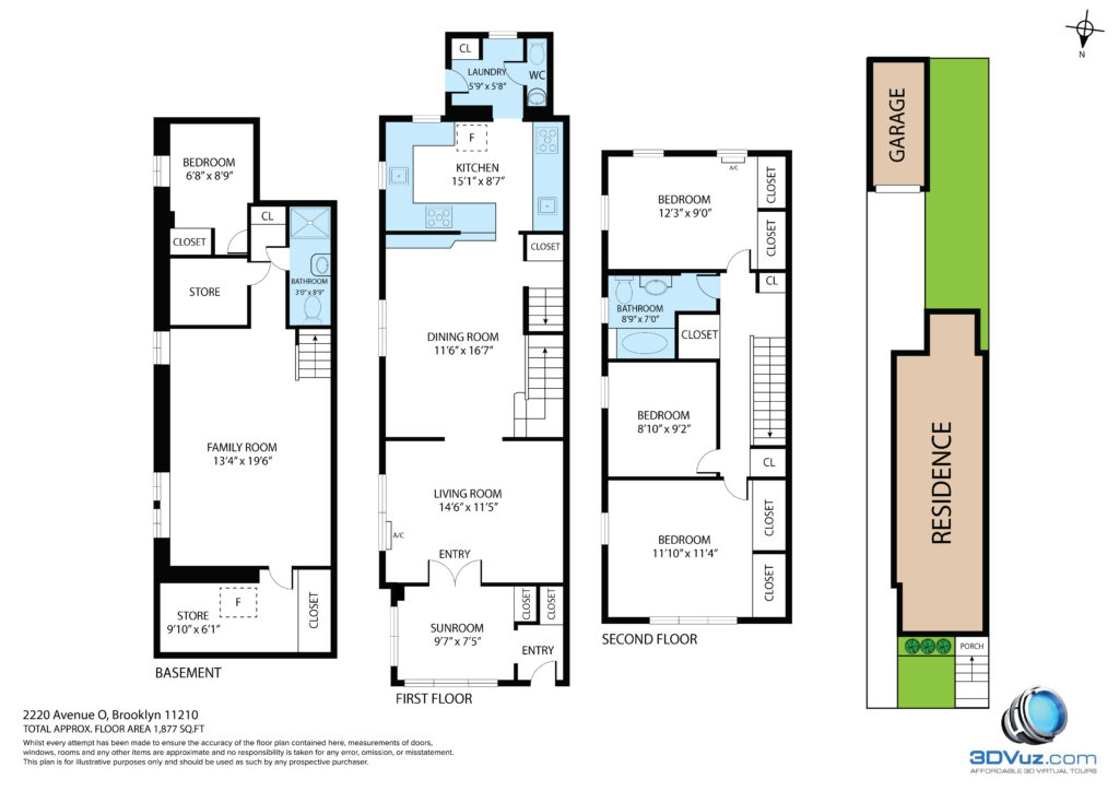 The second floor of the house has three bedrooms, multiple closets and hardwood floors, washer / driver and a lovely full bathroom. The basement is fully finished with another bedroom, 3/4 bath, an extra laundry area, as well as a play area. This house has a shared driveway, garage and fenced in backyard. The house offers the proximity to lots of restaurants, shopping, houses of worship, and public transportation. Come see this house and make it yours.