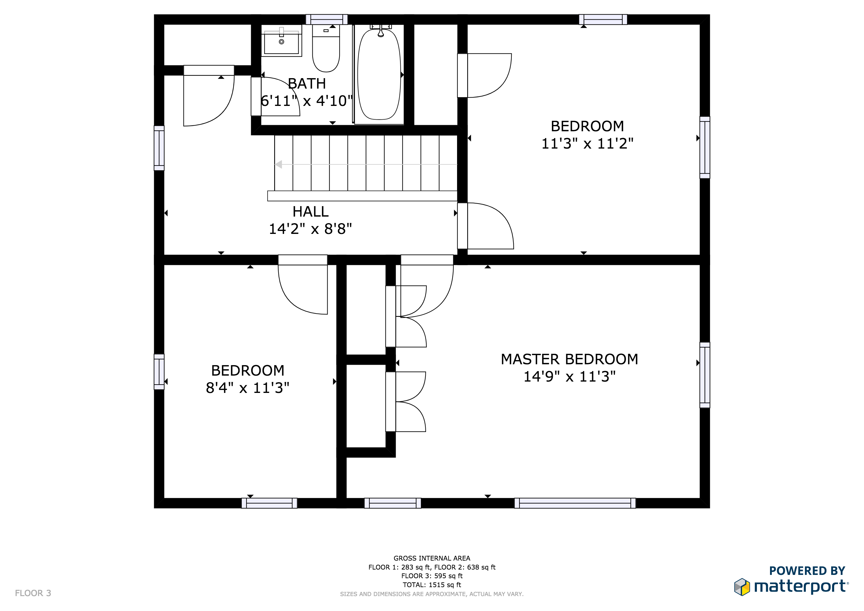 3 bedrooms/2 full baths.