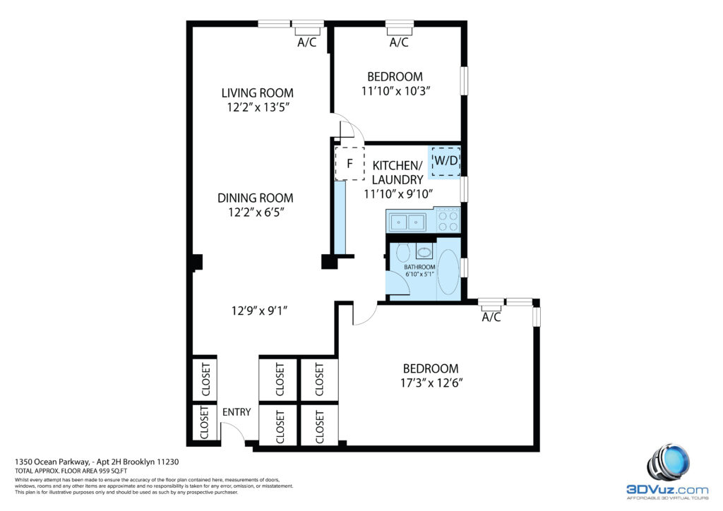 It has 2 bedrooms and is approximately 959 sq ft.